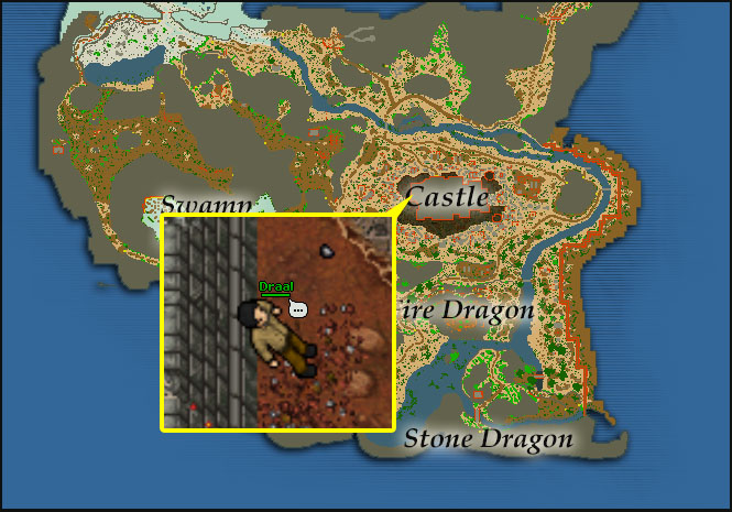 Opis:Przeżył atak smoków, bo schował się do zamkowego więzienia. Pod żadnym pozorem nie chce z niego wyjść. |