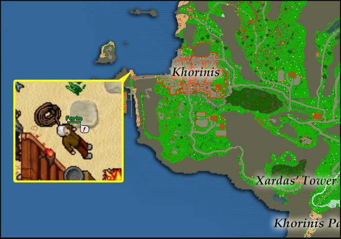 Opis:Jest to rybak mieszkający w Khorinis. Ma problemy ze strażą miejską, która nachodzi go, co jakiś czas, kradnąc jego dobytek z połowu ryb. |