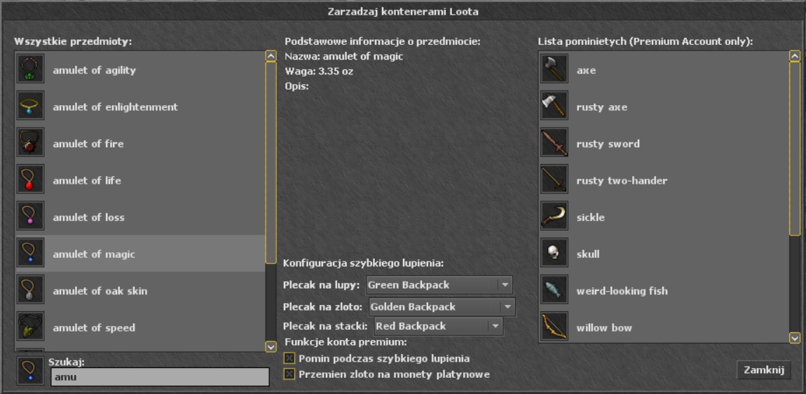 Aby dodać przedmioty do Skipped List, znajdź go po nazwie na liście Wszystkie Przedmioty. Zaznacz go, a następnie zaznacz opcję Pomiń podczas Szybkiego Zbierania. Wybrany przedmiot pojawi się teraz na liście Skipped List. W ten sam sposób można go usunąć z listy, odznaczając opcję. Można także przytrzymać klawisz CTRL i kliknąć prawym przyciskiem myszy na dowolnym przedmiocie w grze, a następnie kliknąć Dodaj do Loot Listy lub Usuń z Loot Listy.