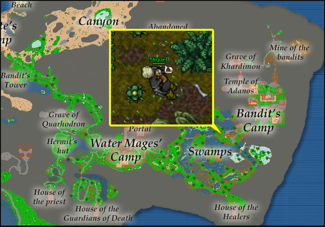 Opis:Był uczniem Ignaza. Został przywieziony do kolonii. Znajduje się przed obozem bandytów, zbierającego zioła. |